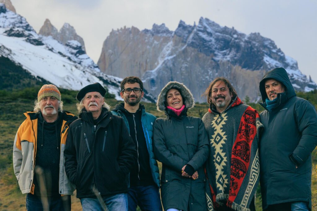 Foto: Juan Pablo Bosco, Mario Mutis, Mauricio Valderrama, Juanita Parra, Alan Reale y Carlos Cabezas González © Gentileza de Los Jaivas