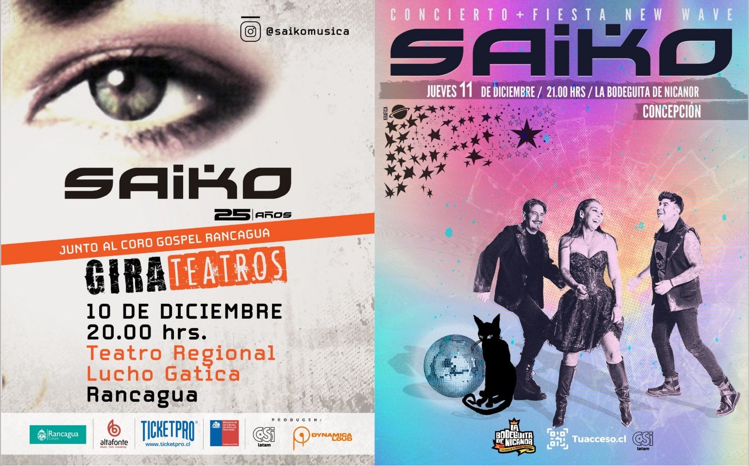 Un concierto enmarcado en la gira oficial de teatros por los 25 años de Saiko. Será una oportunidad para vivir un espectáculo con narrativa visual y sonora pensada para recintos de acústica privilegiada, donde los clásicos se encontrarán con arreglos renovados y estrenos recientes. El evento contará con la participación del Coro Gospel Rancagua, otro imperdible para esta velada. Entradas disponibles a través de Ticketpro.